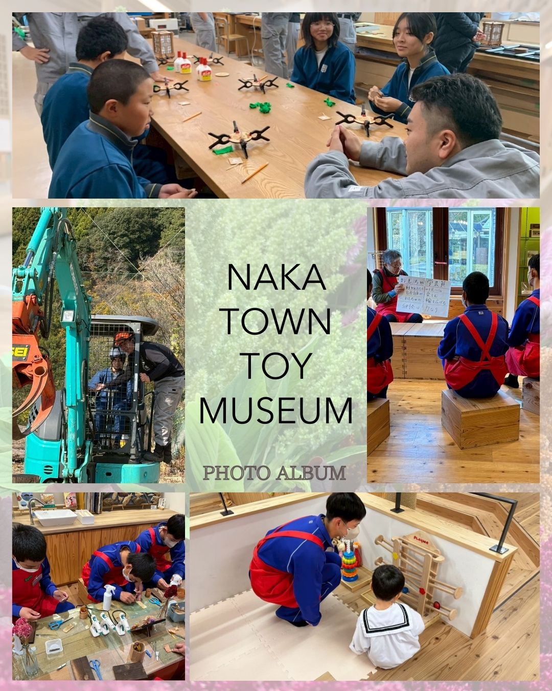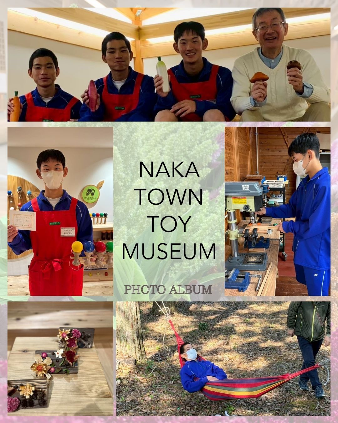 開館以来、毎年受け入れているインターンシップ。今年は、男子3名です。いずれも野球部で、礼儀正しく、前向きに活動に取り組んでいました。幼稚園から知っている子もいて、その成長ぶりがとても嬉しく、頼もしかったです。親子遠足で来館した幼児さんとのやりとりには苦労していましたが、モクトレインや魚釣りに誘ってみる等して、次第に打ち解けていました。先輩おもちゃ学芸員の森さんの「継続は力なり」の言葉に感銘を受けたり、「木の花のワークショップ」では素敵な作品を仕上げたりするとともに、館内清掃やイベント準備などにも真面目に取り組みました。2日の交流学習でも声をかけてくれ、那賀町や日本の未来を担う彼らの活躍が楽しみです。
