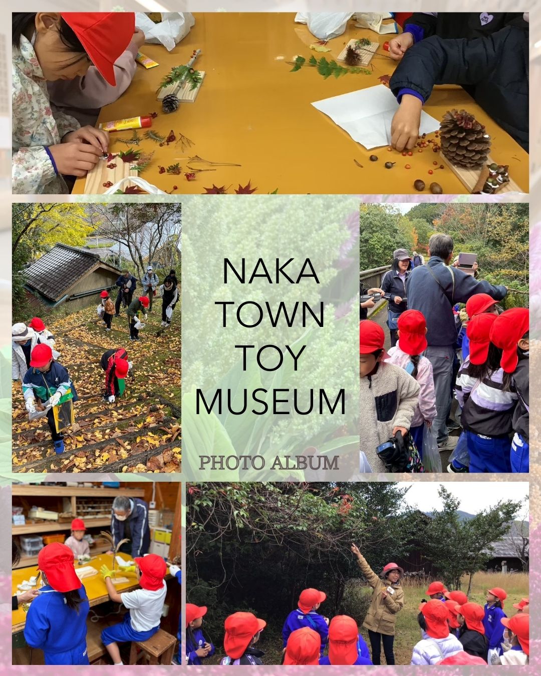 町内全ての小学1・2年生が行った授業で。当館裏山の「あいあいランド東公園」で。ドングリなどの木の実や枝、色づいた木の葉を集め、森林工房で思い思いの作品を作っていきました。いずれの回も、多くのおもちゃ学芸員さんのご参加がとてもありがたかったです。木頭小には「那賀地域林業担い手対策協議会」のご協力により、連記かよこ様が講師として参加くださり、代表的な木の実の名前や特徴等を詳しく教えてくださいました。工房でのクラフトは、こちらもどの子も集中して、自分だけのクラフト作りを楽しんでいました。上に高く積む子、横に広く積む子、紅葉した葉や花を添える子等、学校や個人によって作品に違いがあるのも興味深かったです。