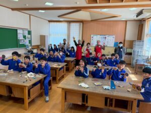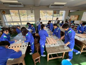 鷲敷小卒業制作「木のプラカード」&新丹生谷製材見学・板材提供