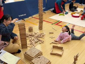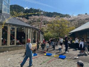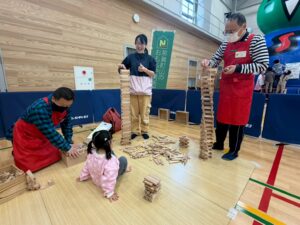 3月20日は、鷲敷で「那賀町大運動会」、21日には木頭で「木頭クマまつり2026」があり、当館スタッフが会場まで出向いて、「出張おもちゃ美術館」を開催しました。いずれのイベントも、およそ300名の参加者があり、那賀町ならではのおもちゃやグッド・トイ、けん玉や積み木等で遊んでくださいました。