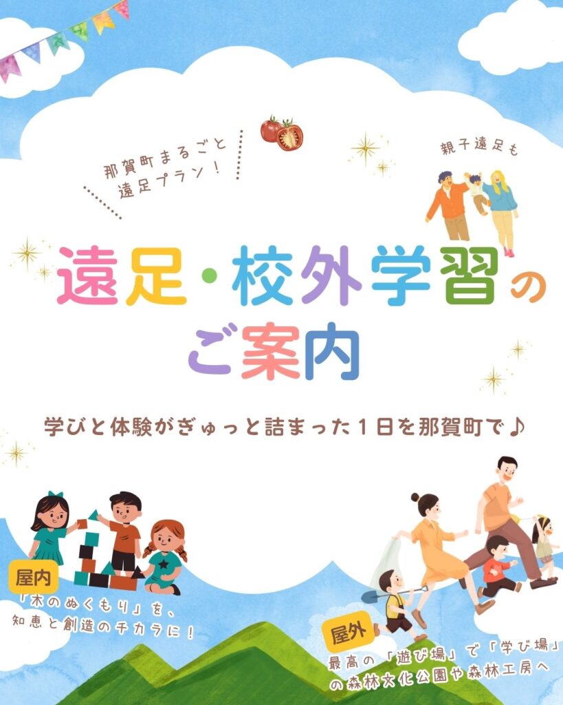 おかげさまで開館3周年☆彡 令和8年度も教育・保育・子育て関係の団体様向けに、リニューアルした体験プランをご用意いたしました。 ◆那賀町まるごと遠足プラン ~学びと体験がぎゅっと詰まった1日!~ ◉探...